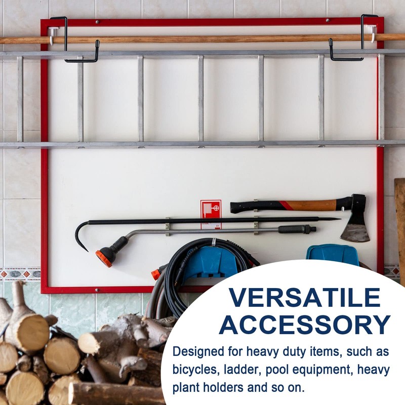 • PRACTICAL DESIGN: These rafter hanger hooks are a simple and friendly solution to save the space, Garage hook has a strong tough grip over rafters without the use of any screws you can hang them on racks,bars,rafters garage,garden,fence .
