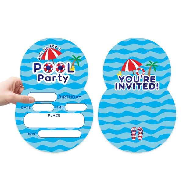 Dinggaogao 4x6 Inch Swimming Party Invitations with 20 Self-Seal Envelopes - Summer Birthday Pool Party Invite Cards,Beach Theme, Double-Sided,Game Party Decoration(20 invitations + 20 Envelopes)