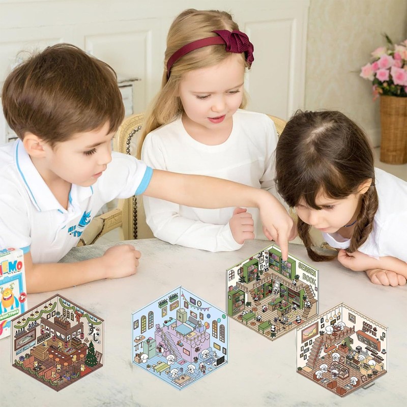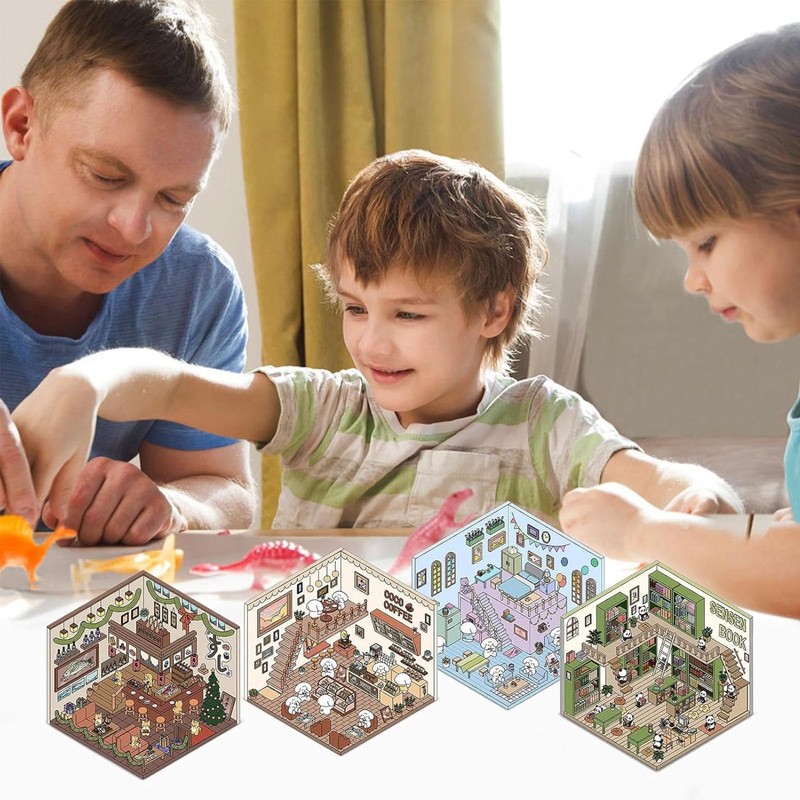 dinghaole 4 Sets DIY 3D House Stickers, 3D Sticker Scene, DIY Scene Stickers, Fun DIY Stickers Scene Make Your Own Supermarket, Coffee Shop, Restaurant, Bookstore, for Relief Stress, Pass The Time
