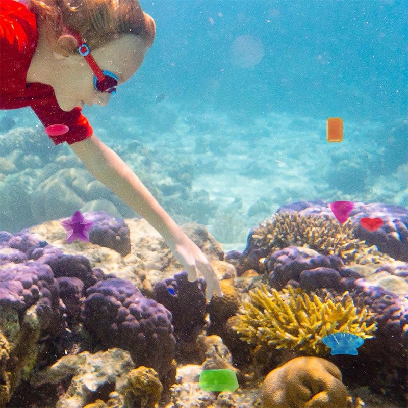 - Various Shapes: These sinking dive gems have 8 different shapes: shell, Star, Heart, Round, Ellipse, Triangle, Square and Rectangle. With cute shape,bright color and smooth lines, they looks more beautiful and can also sink into the water easily.