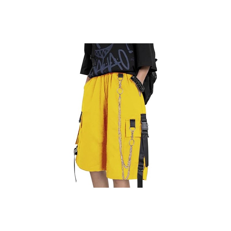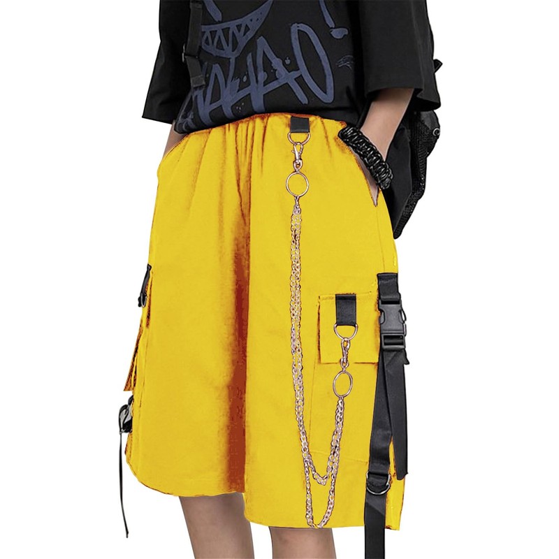 DINGJIUYAN Loose Cargo Shorts with Chain Women Large Pocket Harajuku Short Pants Couple Trendy Summer Hip Hop Goth Shorts