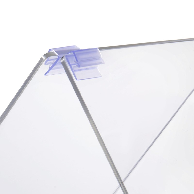 - Simplicity of Installation: our sneeze guard holder is designed to be simple to install; The holder requires no special skills or complex tools for assembly; When using it, you only need to insert the glass or other material panel into the slot; The PVC is so flexible, and it will clamp the panel firmly