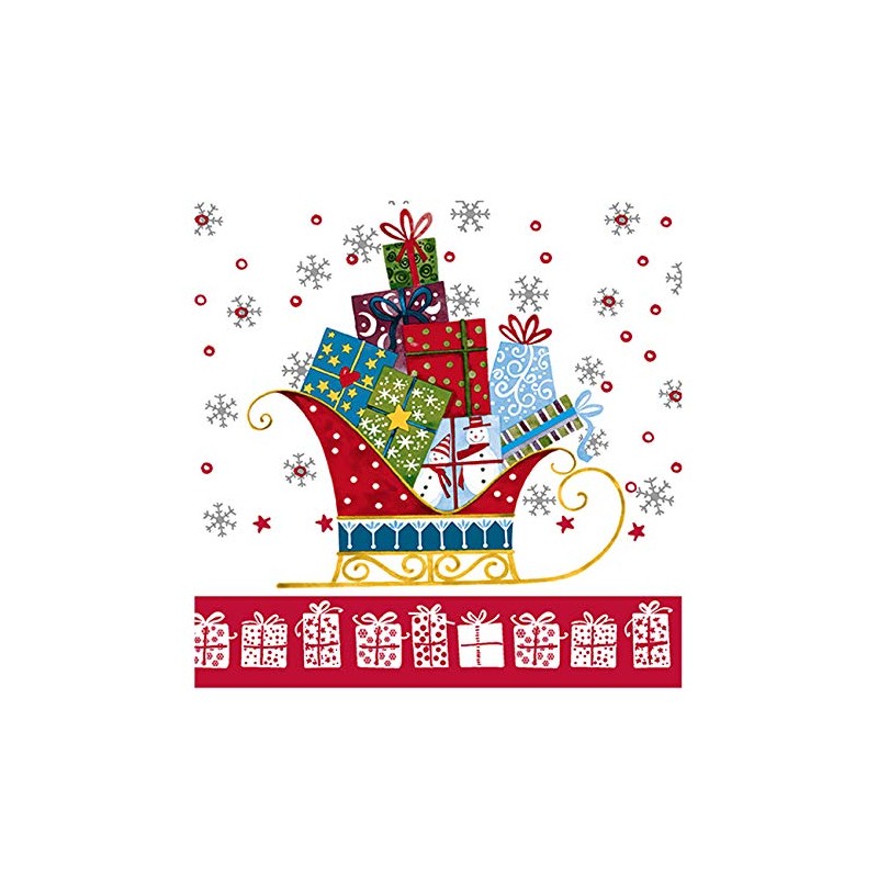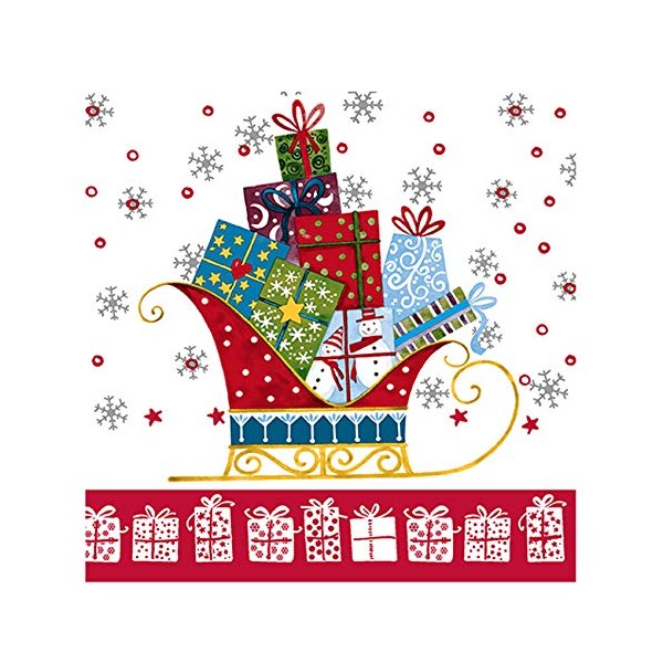 Dining Collection Christmas Lunch Size Napkins Santa's Sleigh - 20 Count