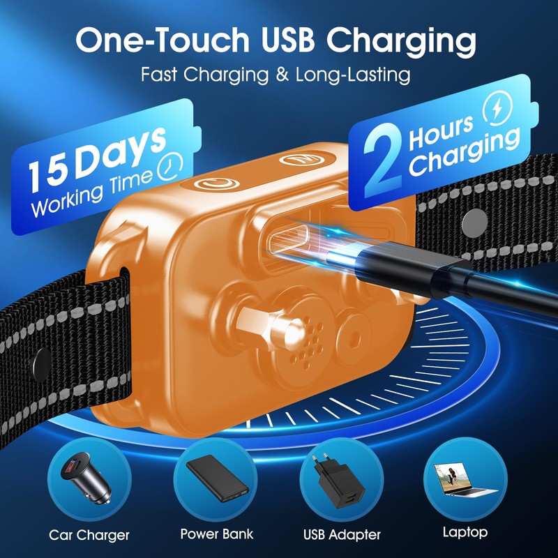 - Quick Charging and Long Lasting: With USB charging, DINJOO no bark collars for dogs charge in just 2 hours and can last up to 15-20 days.DINJOO dog bark collar adopts an intuitive large LED color interface, which displays richer content and has a strong sense of technology. The color screen displays the power capacity and low battery reminder to provide convenient use