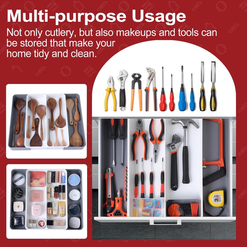 - 【Durable & Easy to Clean】The kitchen utensil organizer made of high-quality and thick PP material, our kitchen utensil tray is built to last and safe to use with all types of tableware, safe and durable. Adjustable silverware organizer is easy to clean, simply rinse with water to remove stains, instead of washing it in the dishwasher.