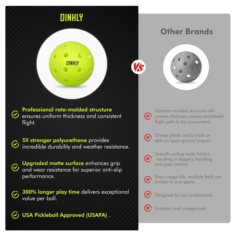 - USAPA Approved-Officially approved by USA pickleball for tournament play, this ball boasts a bright green hue that enhances visibility on the court, allowing beginners, intermediate players and professionals to enjoy a better experience.