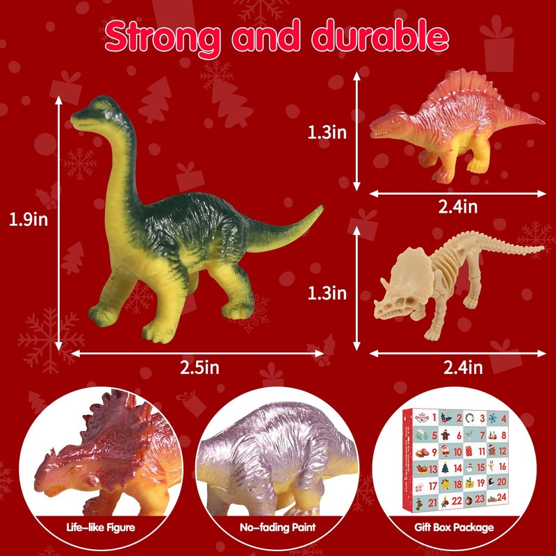- 【24 Days Christmas Advent Calendars】Countdown to Christmas is an exciting time for Kids. The Dinosaur Advent Calendar 2024 includes 24 Toy Dinosaur Figurines, revealing a new surprise each day, that will accompany your child through the most exciting 24 days before Christmas.
