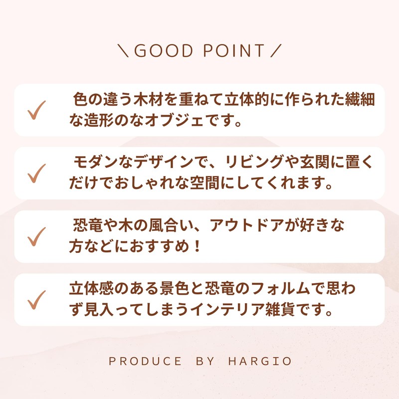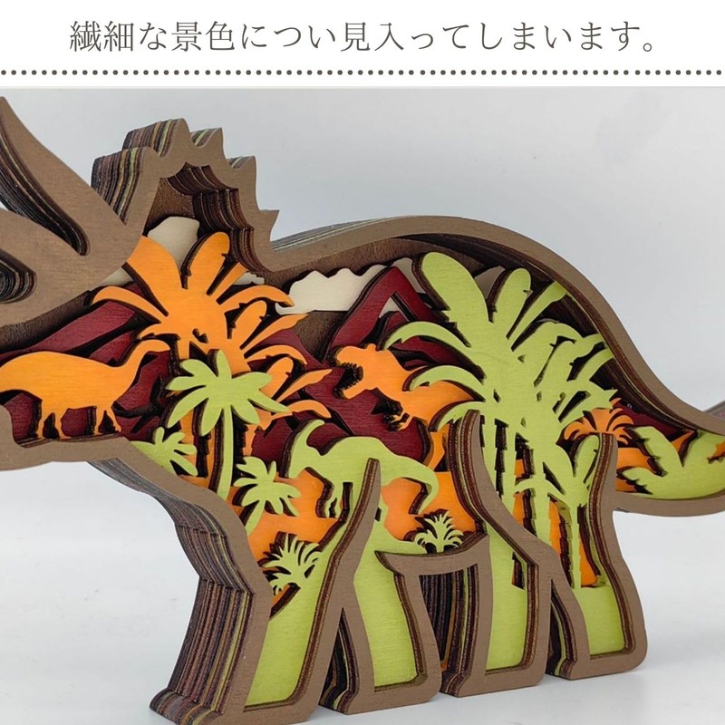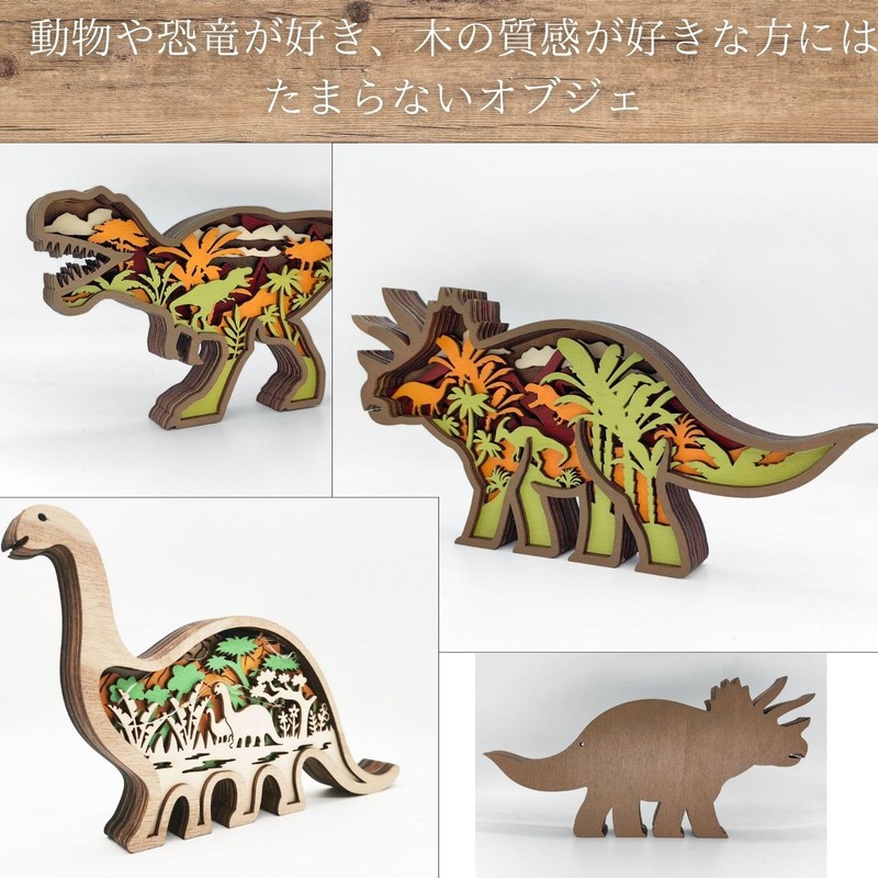 - 🦌 色の違う木材を重ねて立体的に作られたインテリア雑貨です☆立体的な造形があしらわれた木製オブジェで空間がおしゃれになる、洗練された恐竜デザイン。