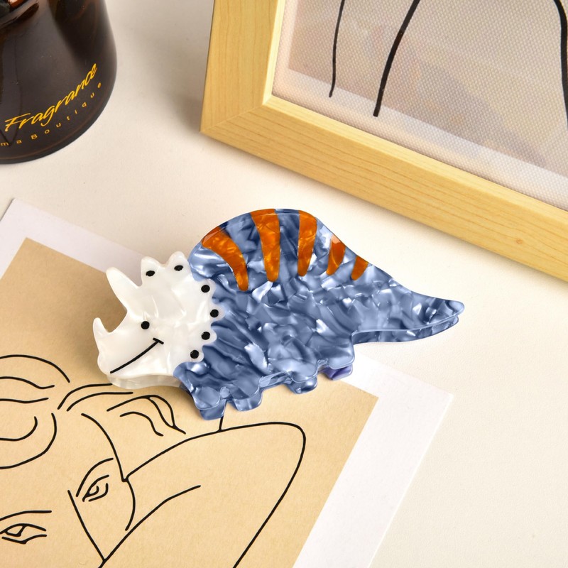Dinosaur Hair Clip, Acrylic Hair Clip, Acetate hair clips, Accessories Cute Small Hair Clips for Thick Hair for Women Girls (Blue and white dinosaurs, 10.5cm)