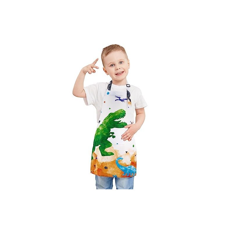 Dinosaur Kids Apron - Waterproof Polyester Aprons with Adjustable Strap and Pocket Kitchen Chef Aprons for Children Boys Cooking Baking Painting Party Christmas Birthday Gifts