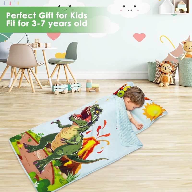 - 5. Multi-function: at home, children can cuddle next to their parents; outdoors, whether it is camping, nursery nap, or overnight party, travel. This cuddly sleeping bag is a very suitable choice; green dinosaur volcano picture is loved by children, can be used as a birthday, Christmas gifts for children