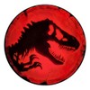 - SIZE AND STYLE: Bold red circular design with detailed dinosaur silhouette provides striking contrast and visibility on any surface