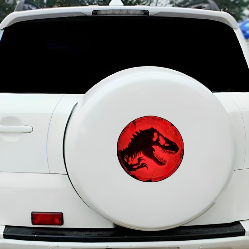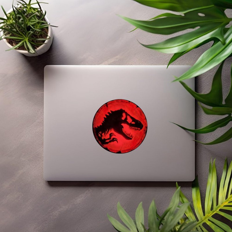 - STRIKING DESIGN: Features a dramatic red T-Rex silhouette against a circular background, creating an eye-catching window decoration for vehicles and laptops