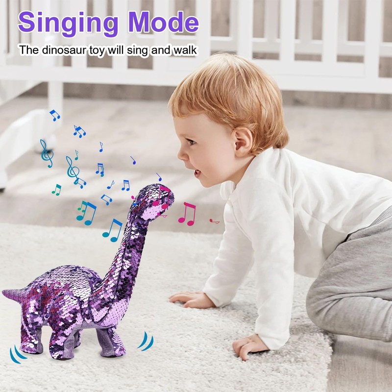 Monealpis Dinosaur Toys for Girls - Sequin Walking Dinosaur Toy with Remote, Roar, Sing, Walk, and Repeat Features, Dinosaur Toy Gift for Kids, Toddlers, Birthday, Christmas, Easter