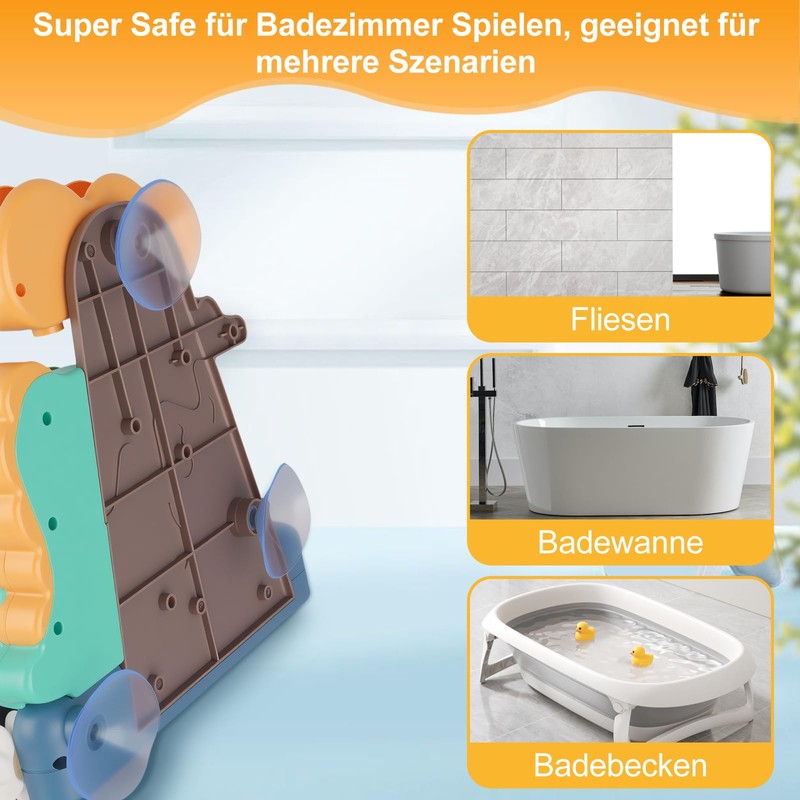 - 【Stabile Absorption】Drei starke Saugsaugen auf dem Badewannenspielzeug sind dreieckig angeordnet. Sie halten gut an glatten Oberflächen wie der Badewand oder Badewanne, bleiben nicht einfach fallen und bieten Sicherheit beim Spielen.