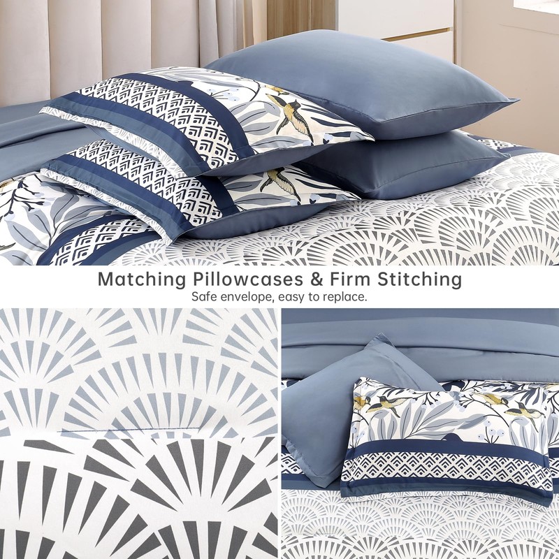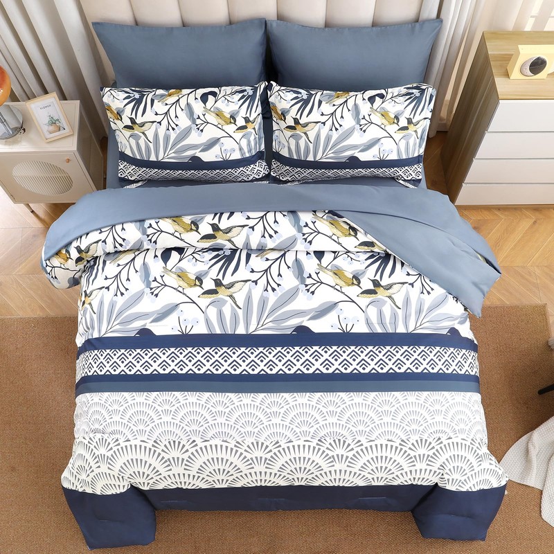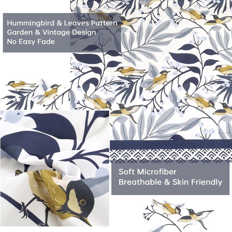 - [Reversible Floral Comforter] The blue flowers leaves bedding set, romantic elegant birds print design instantly livens up your bedroom with garden style. The boho botanical birds print comforter set is suitable for boys, girls, women and men. Great gift choice for birthday, Christmas, Mother's Day, Valentine's Day or any time you think someone deserves a nice bedding. The beautiful hummingbird comforter, reduce the pressure of life, and give you more time to enjoy life.