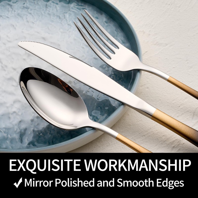 - 【Durable Construction】: Crafted from high-quality 18/0 stainless steel, this cutlery set ensures long-lasting durability and resistance to corrosion.