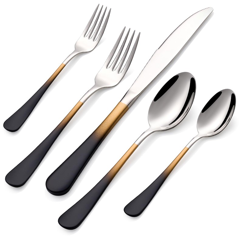 DINYWOW 20-Pieces Black gold Silverware Sets for 4,Black gold Handle Stainless Steel Cutlery Set, Include Forks Spoons and Knives Set, Dishwasher Safe Utensil Sets for Home Restaurant