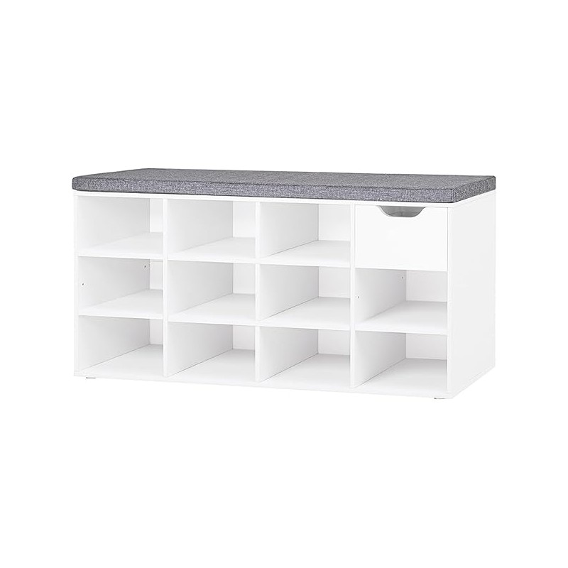 DINZI LVJ Shoe Bench, Entryway Storage Bench with Drawer and 11 Cubbies, Cubby Shoe Rack with Adjustable Shelves, Shoe Organizer Cabinet for Living Room, Bedroom, Mudroom, Closet and Garage, White