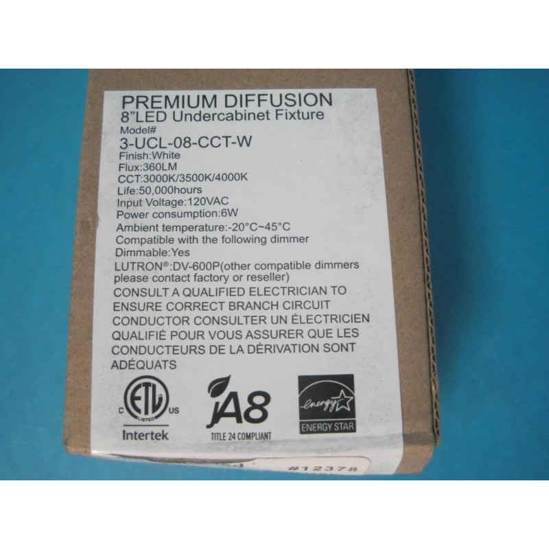 NEW DIODE LED 8" UNDERCABINET FIXTURE WHITE 360 LUMEN SELECTABLE 3000/3500/4000K