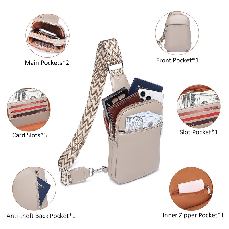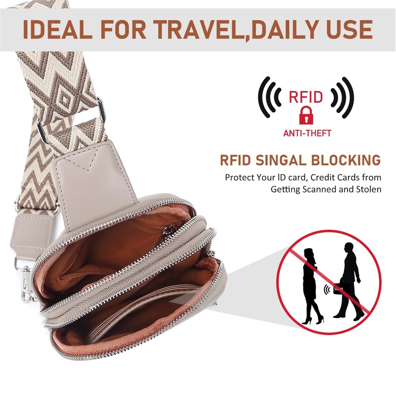 - 1. 【RFID BLOCKING】-- Equipped with advanced RFID Blocking technology , Our card slots of the sling bag can protect your cards, driver's licenses & IDs from unauthorized scanning and stealing while you travel, shop or daily use, and not being a target of pickpockets.