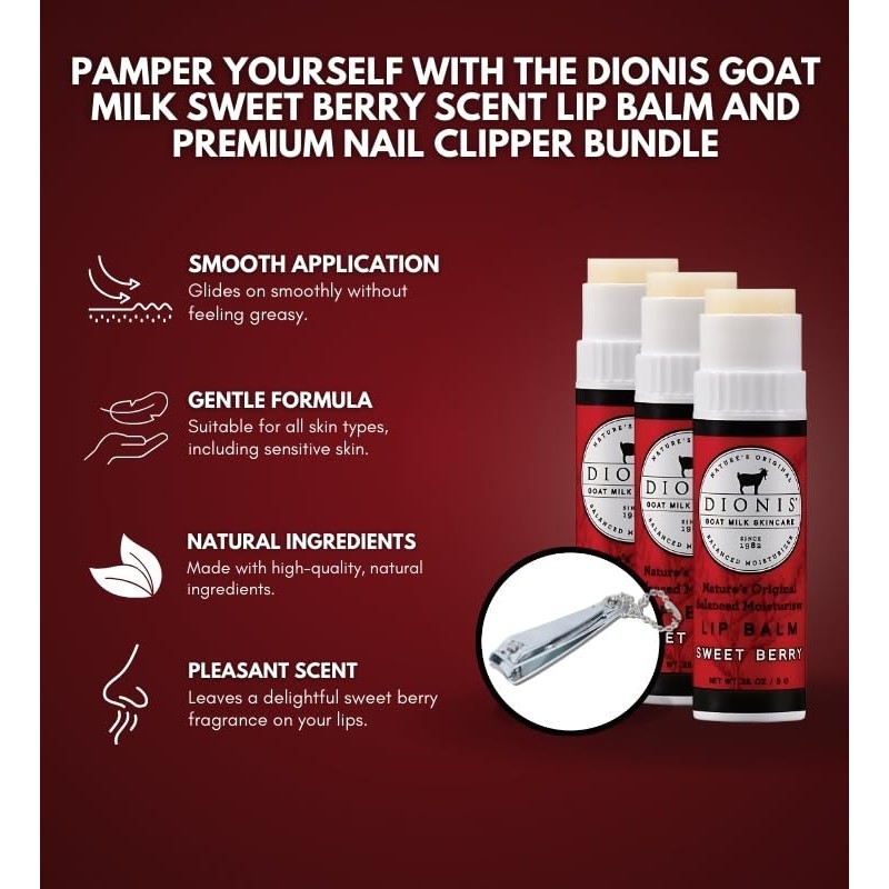 - PERFECT BUNDLE SET - This set includes 3x Sweet Berry Scent Lip Balm and a Nail Clipper for a complete grooming set, offering soft, hydrated lips and neatly trimmed nails.