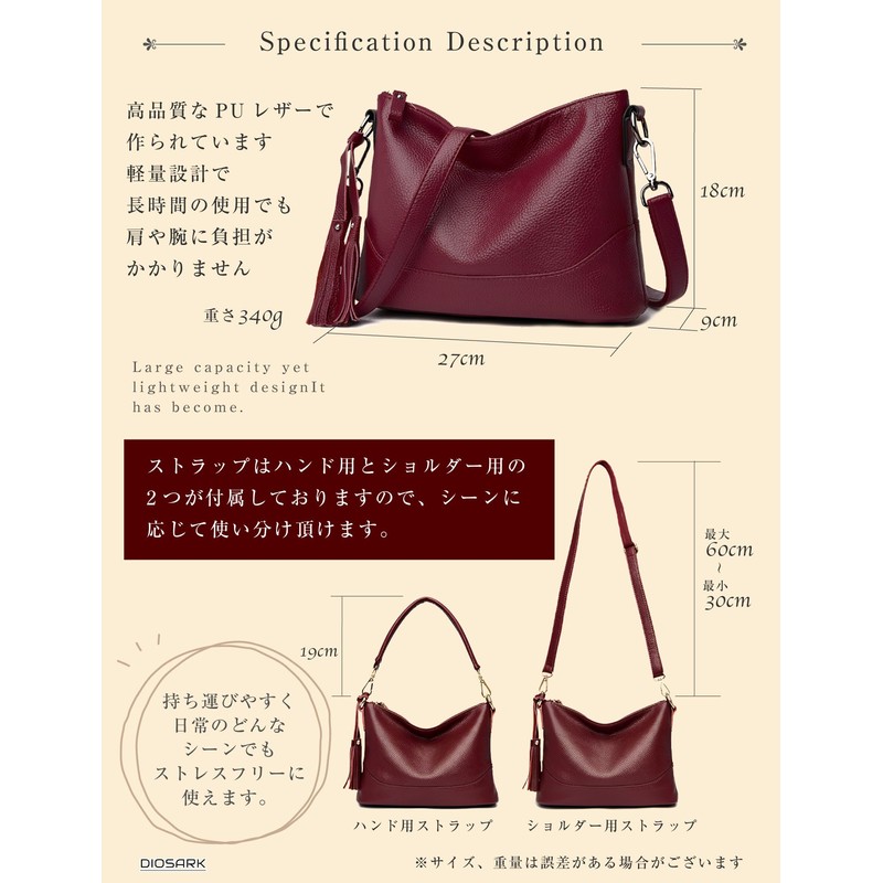 - (2-way specifications) The strap comes with 2 pieces for a shoulder bag or a handbag, so you can use it in 2 ways depending on the situation. The simple horizontal design is popular among people of all ages