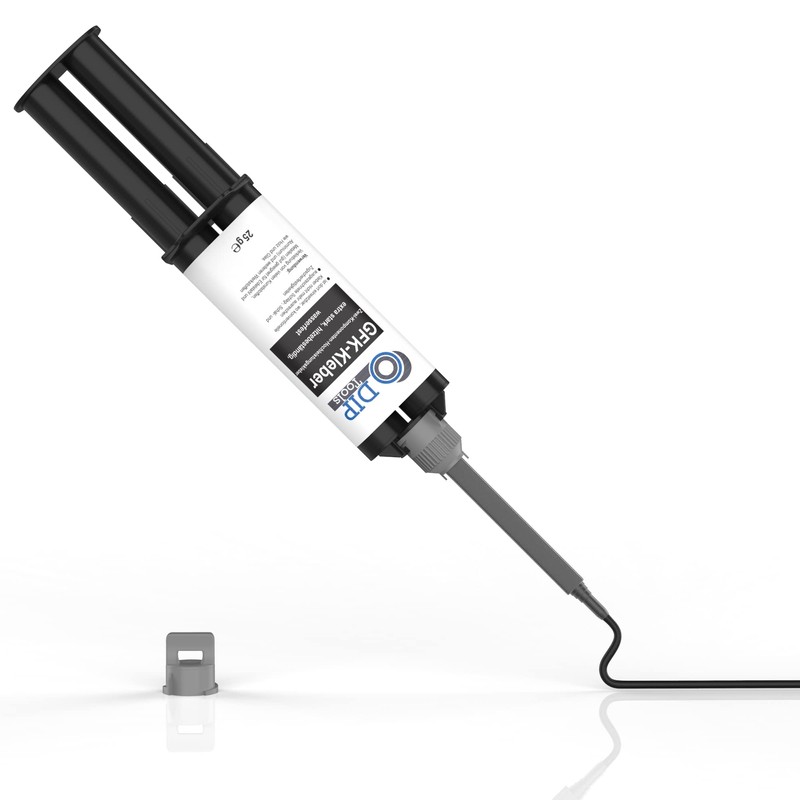 DIP Tools DIP-Tools GFK-Kleber - extra stark, hitzebest?ndig, wasserfest | 2 Komponenten-Kleber Kunststoff, Holz, Stein, Metall inkl. Mischdsen - schwarz (2x25ml)