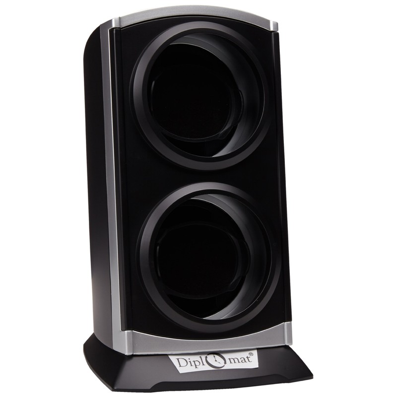 Diplomat Double Metallic Silver / Black Watch Winder with Built In IC Timer