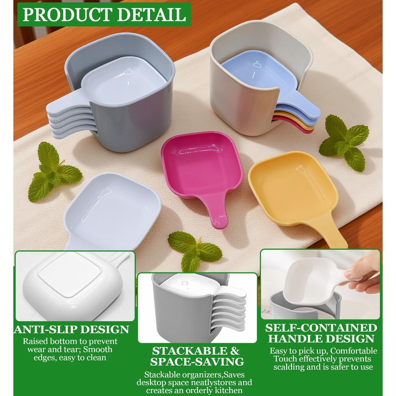 - A Space Saver & Anti-slip Design: 6 Plastic dipping bowls come with a bonus stacking stand, which allows you to stack and store your dipping sauce plates neatly and Keep your kitchen or dining area clean and organized; Anti-slip design with a raised bottom to prevent wear and tear.