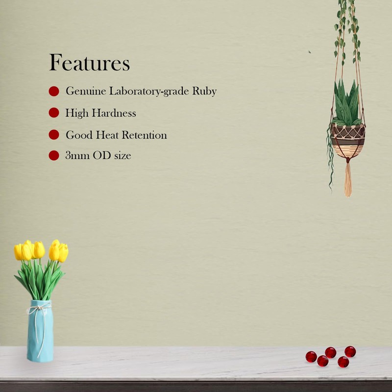 - Qualified Ruby Pearls C Better Heat-Retention and lasting than regular 3mm glass pearls, our ruby pearls are made from lab-grown ruby C making the purpose perfect.