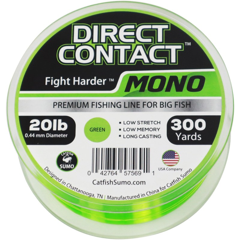 Direct Contact Premium Mono Fishing Line for Big Fish - Low Stretch - Low Memory - Long Casting, 300 Yard Spool with Abrasion Reistant Treatment (20lb, Sumo Green)