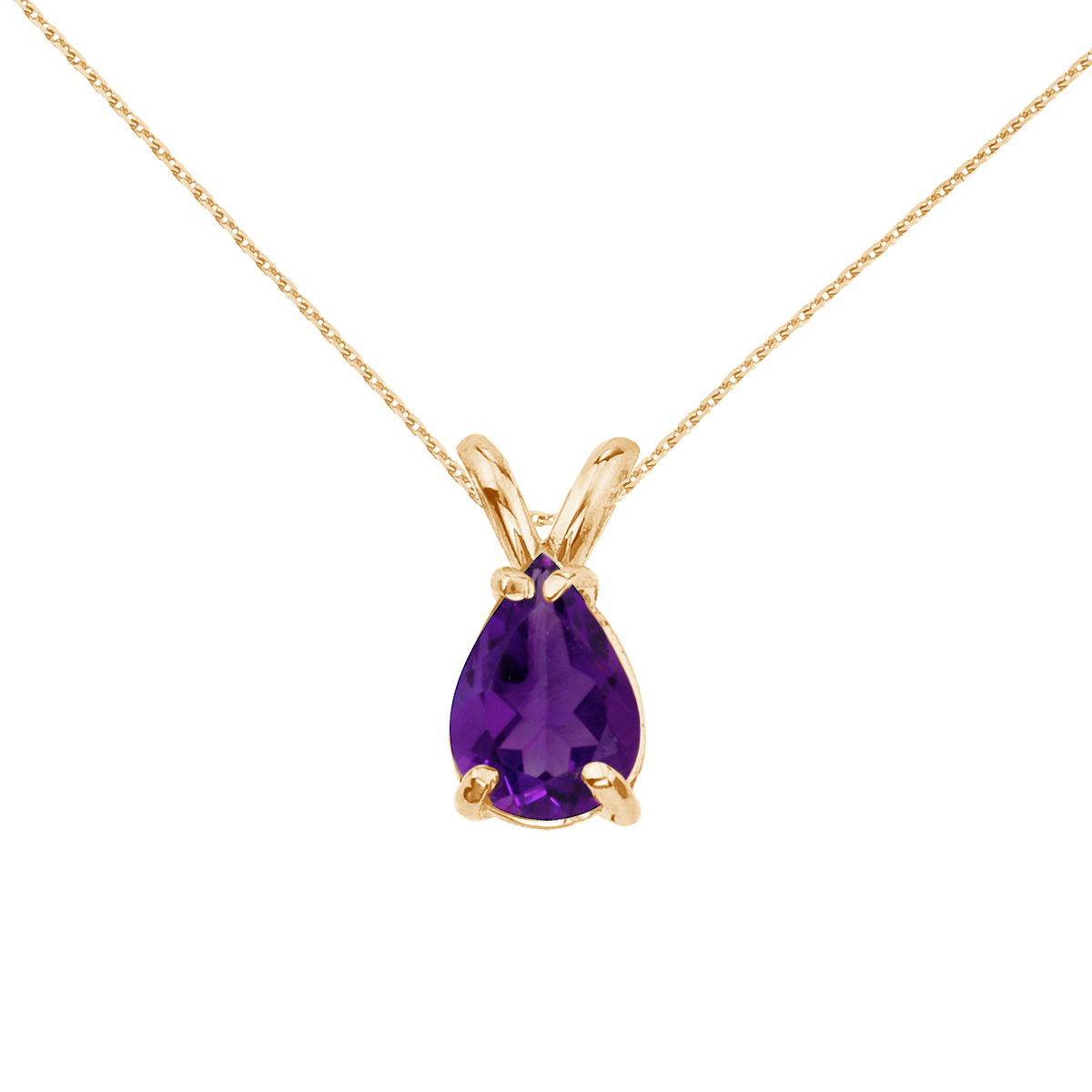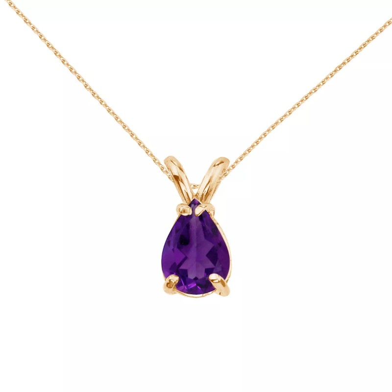 DIRECT-JEWELRY DON'T FORGET THE DASH 14k Yellow Gold Pear Shaped Amethyst Pendant with 18" Chain