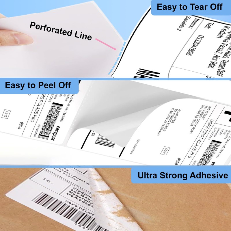 - EASY TO TEAR, EASY TO APPLY: 4 “x6” thermal labels with perforated lines are easy to tear, peel and stick to packages for a smooth application process!