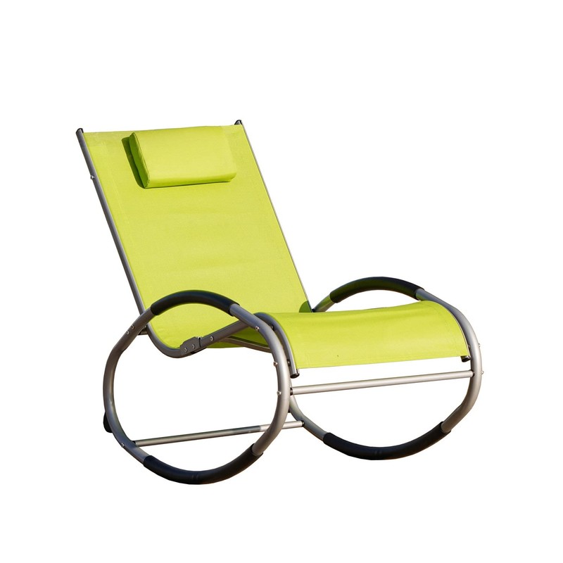 Direct Wicker Patio Rocking Recliner Chair Curved Chaise Lounge Chair w/Pillow for Yard Pool Outdoor Indoor, Iron Rock O-Shaped Lounge Chair (Green)
