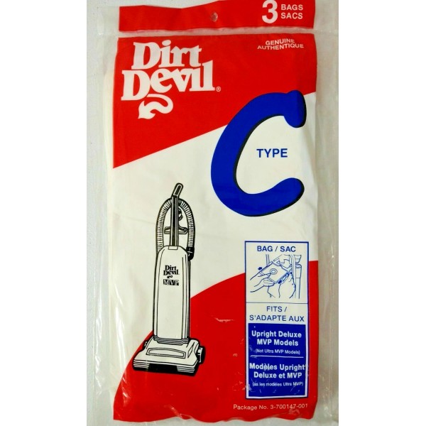 Dirt Devil Upright Deluxe & MVP Model Style C Vacuum Cleaner Bags 3 Pack New