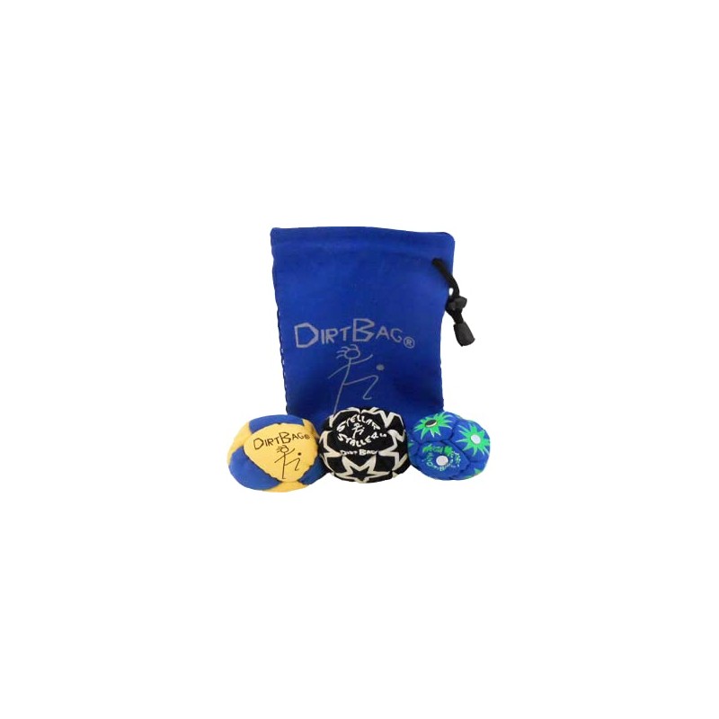 DIRTBAG All Star Footbag Hacky Sack 3 Pack with Pouch, 100% Handmade, Premium Quality, Bright Vivid Colors, Signature Carry Bag - Yellow/Blue