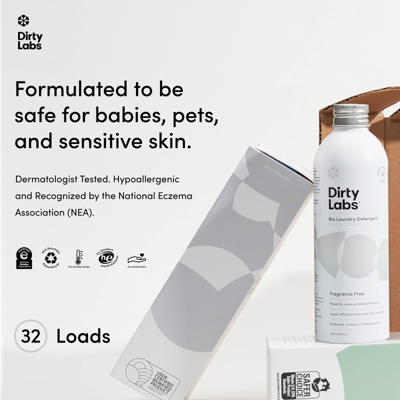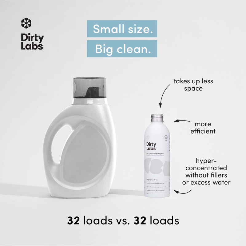 Dirty Labs | Scent Free | Bio-Liquid Laundry Detergent | 32 Loads (8.6 fl oz) | Hyper-Concentrated | High Efficiency & Standard Machine Washing | Nontoxic, Biodegradable | Stain & Odor Removal