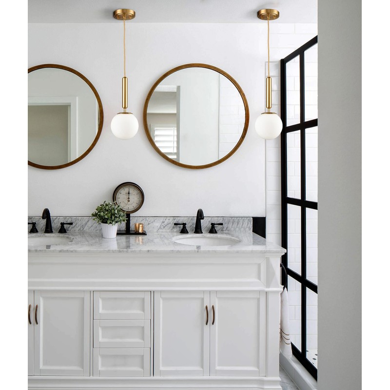 DIRYZON EUL Mid Century Modern Globe Pendant Light Opal Glass Hanging Light Fixture Gold Finish