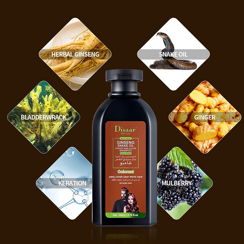 DISAAR Beauty Ginseng Snail Oil Sppedy Hair Color Shampoo Natural Brown Cover Gray White Hair 8 - Minutes 200ml+200ml