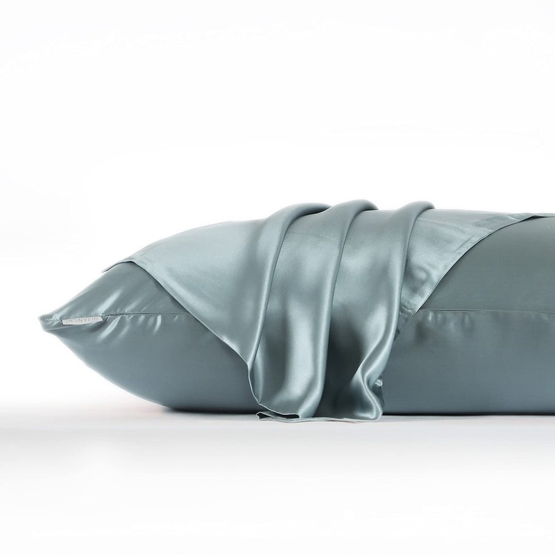 DISANGNI 100% Natural Mulberry Silk Pillow case for Hair and Skin with Hidden Zipper 22 Momme Both Sides Real Silk Pillow Case (2pc Queen Size 20" x30", Blue Gray)