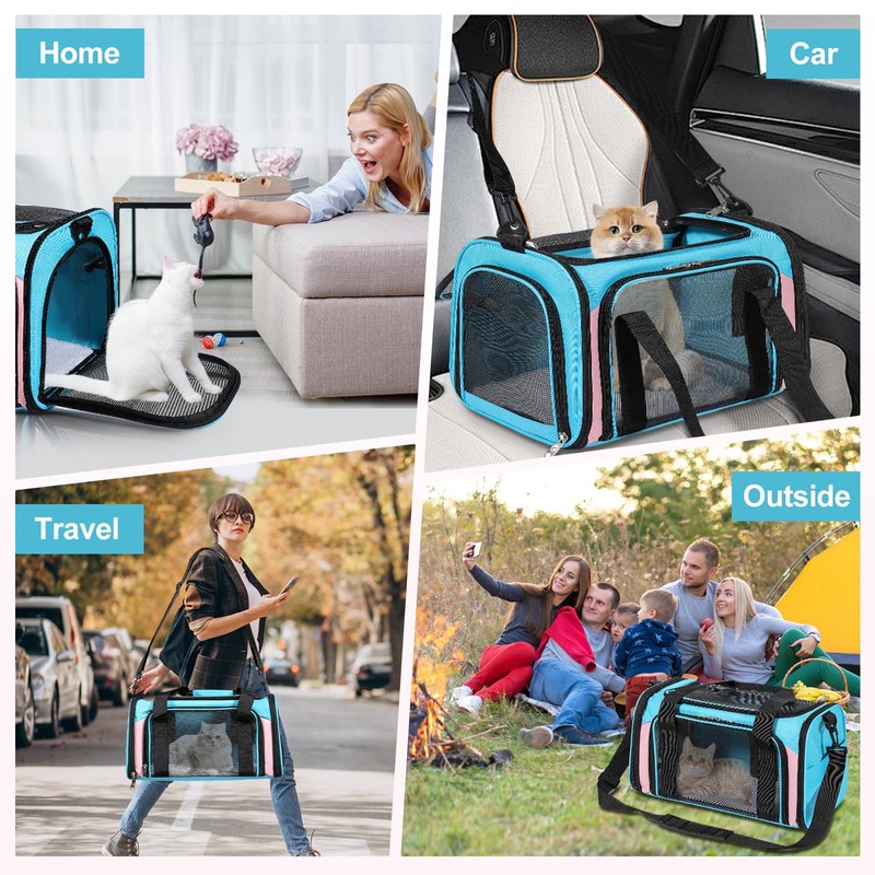 Discala Cat Dog Carrier Pet Carrier for Small Medium Cats Puppies Dog Carriers for Small Dogs Collapsible Soft Sided Cat Travel Carrier - Blue&Pink 21 * 13 * 13
