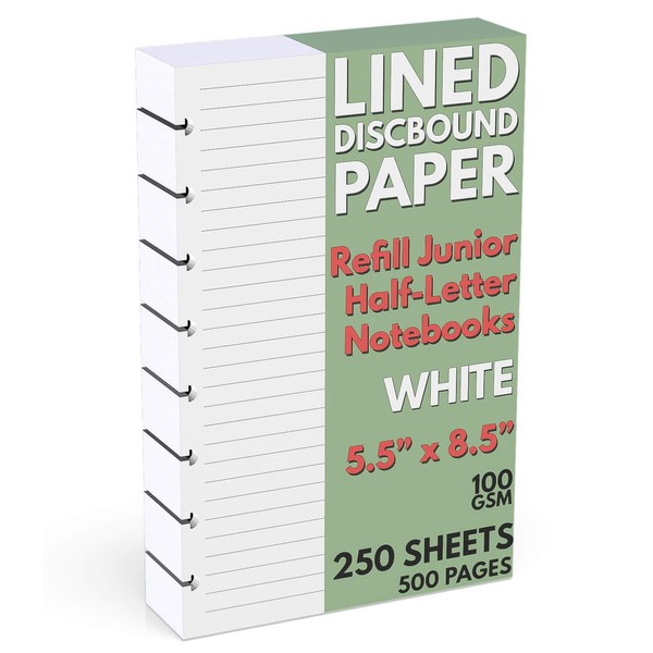 Discbound Half-Letter Size Lined Paper Refill, 250 Sheets (500 Pages), 5.5 in. x 8.5 in., 100 GSM, Junior Size 8 Disc Notebooks