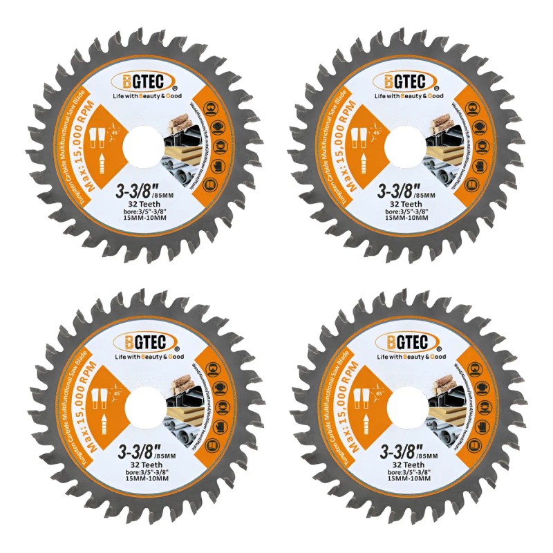 - Artículo: TCT 85MM disco de corte de carburo de madera Cantidad:4piezas Especificación: Orificio: 15MM; Dientes: 32; Diámetro: 85MM,3
