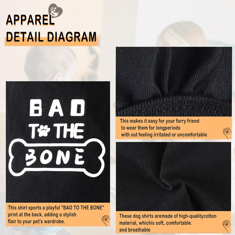 Discover Cozy Cotton Canine Wear: Soft, Lightweight, and Breathable Dog Shirt Vest with Eye-Catching Graphics(Bad to The Bone), Keeping Your Furry Friend Warm and Comfy! Black M
