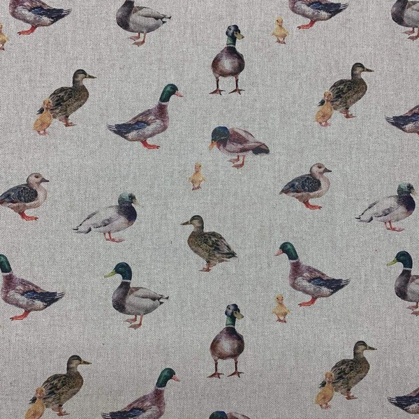 Discover Lifestyle & Fashion Fabrics Mallard Ducks Digital Print Design Cotton Rich Linen Look Fabric For Curtains Blinds Craft Quilting Patchwork & Upholstery 55" 140cm Wide – Sold by the Half Metre