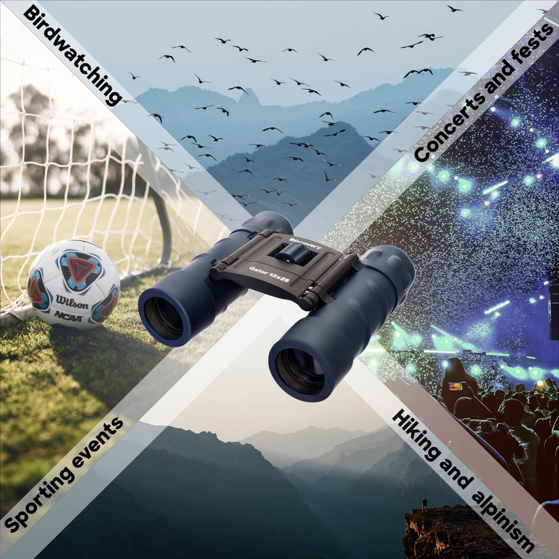 Discovery Gator 12 x 25 Pocket Travel Binoculars for Bird and Animal Watching, Sightseeing, Hiking, Concerts and Sports Events