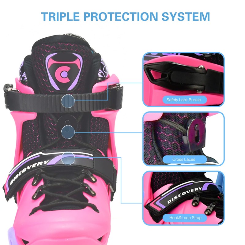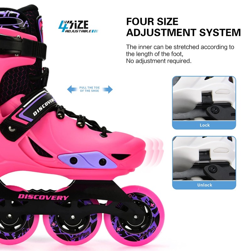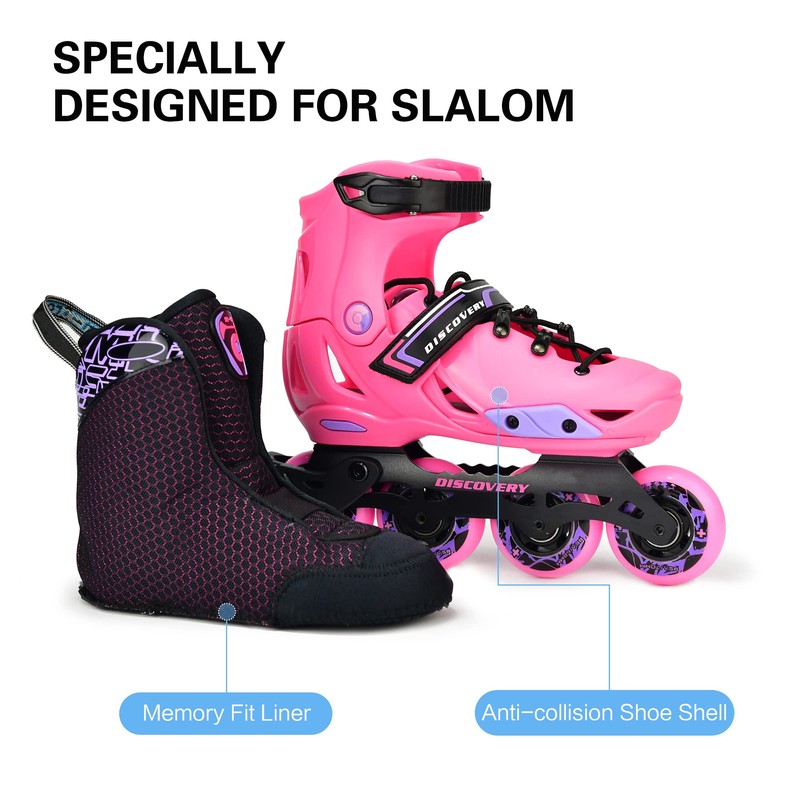 Discovery Kids Adjustable Molded-Shell Inline Skates, Freestyle Slalom Beginner (Pink, EU 37-40 / US 6-8.5 / 235mm-259mm)