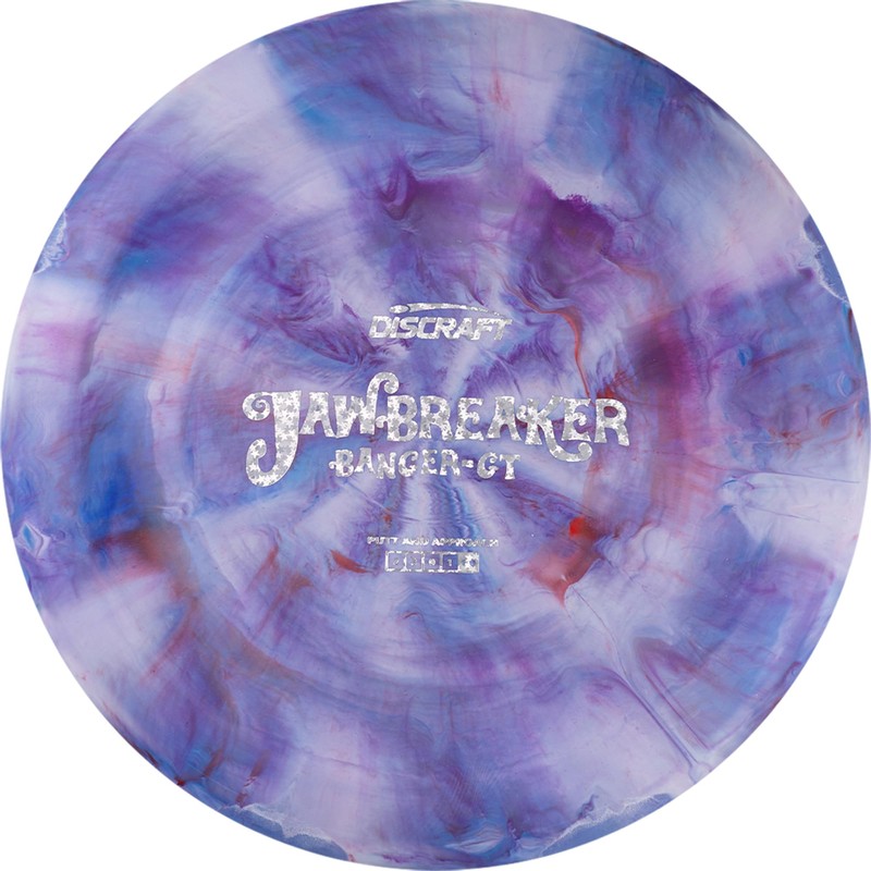 • The Jawbreaker Banger-GT features a distinctive thumb groove (Groove Top) for enhanced grip and control, making it a popular choice for putt and approach shots. This overstable disc provides a consistent flight path with a reliable fade, ensuring accuracy even in challenging conditions. This Jawbreaker plastic blend adds a unique aesthetic with its mesmerizing swirl patterns, while offering a tacky grip that enhances throw consistency.