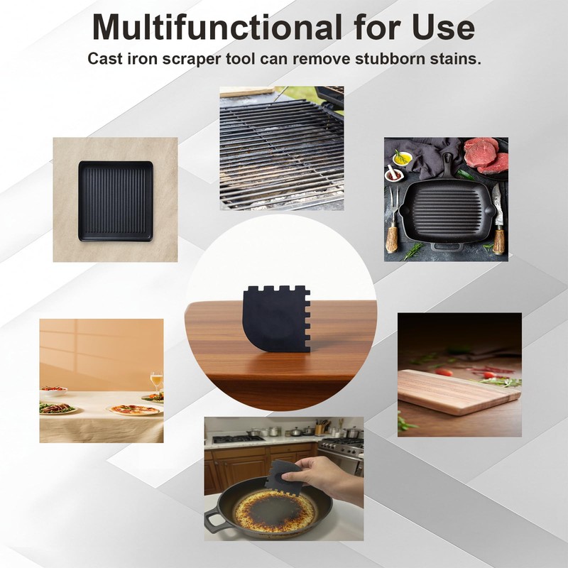 - Cast Iron Scraper: Easily scrapes off burnt-on grease and old rust.